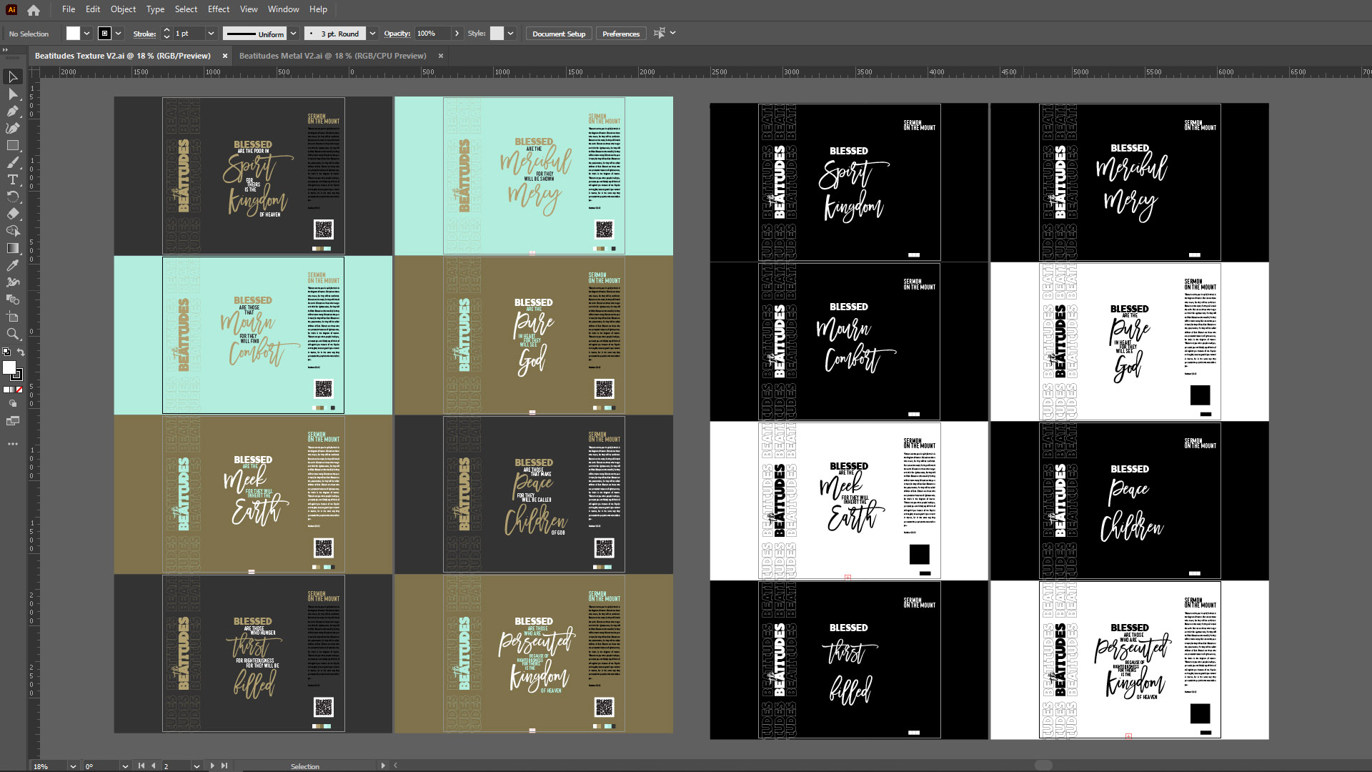 How do you market a series that is solely focused on scripture? The Beatitudes is one of Jesus' most famous sermons with a wide range of points that He covers. My first concepts focused on making the type "The Beatitudes" beautiful but I wanted more depth to the project. I also wanted to include some of my layout design and packaging skills to this project. That's when it hit me. Why not create each scripture verse as a product in the The Beatitudes product line?